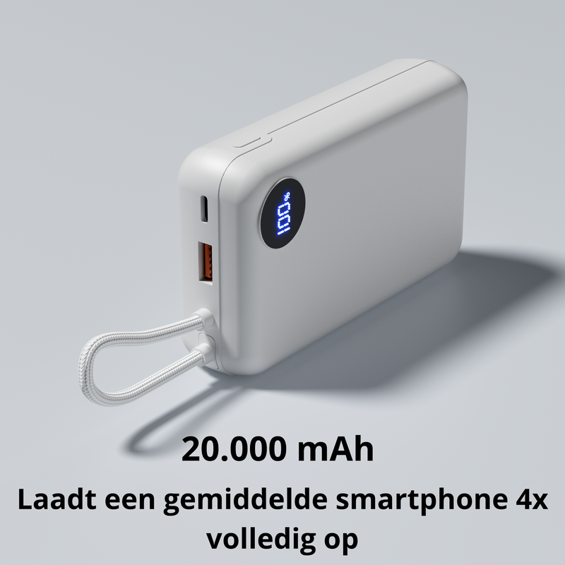 Of je nu op reis bent, onderweg of gewoon geen stopcontact in de buurt hebt, met deze powerbank heb je altijd stroom voor je smartphone, tablet of andere USB-C apparaten, zoals een iPhone of Samsung.